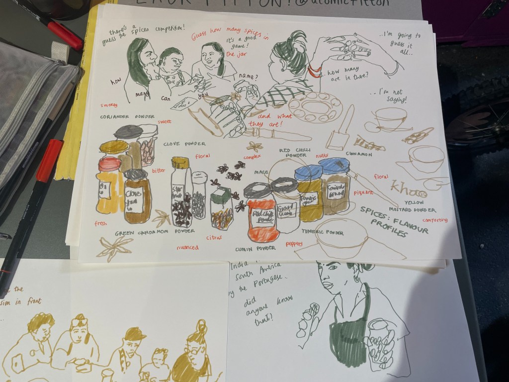 A week of workshops took place at the newly opened Mercarto Metropolitano Ilford. Laur Fritton captured the workshops with live illustrations. Each day ended with a musical performance from ELAM alumni.